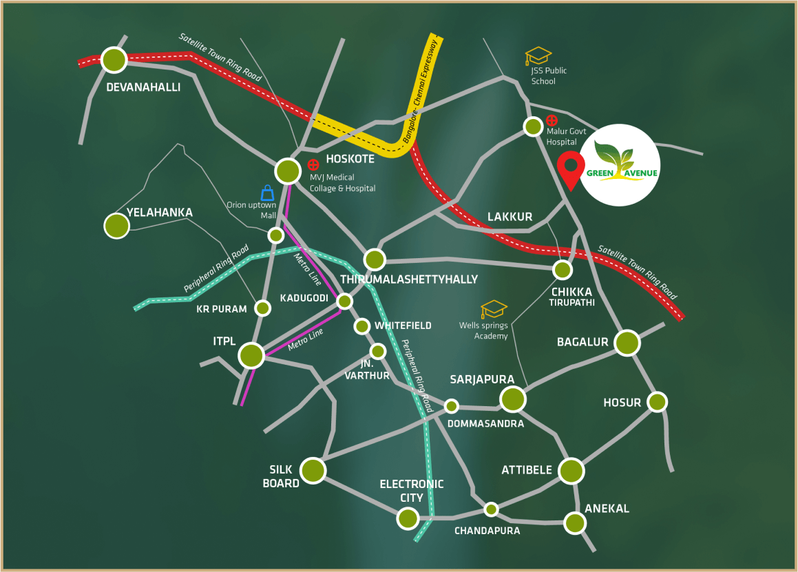 At the crossroads of accessibility and sanctuary, Green Avenue stands Paramount. Our strategic location provides unparalleled benefits and connectivity throughout Bengaluru. Just steps away from essential services, bustling commerce and recreational attractions, it still maintains the tranquility of a secluded haven. It’s a rare alignment that elevates everyday living and promises enduring value, crafting an investment that is as wise as it is heartfelt.Â